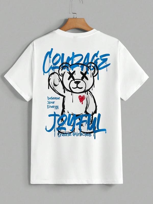 Men's Cartoon Bear Print Round Neck Tee, Regular Fit Casual Short Sleeve T-shirt, Men's Summer Top for Daily Wear, Tropical