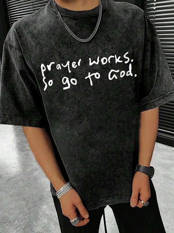 Men's Letter Print Wash Denim-Effect Short Sleeve Tee, Regular Fit Casual Fashion T-shirt for Summer, Men's Top for Daily Wear, Crewneck, Cotton